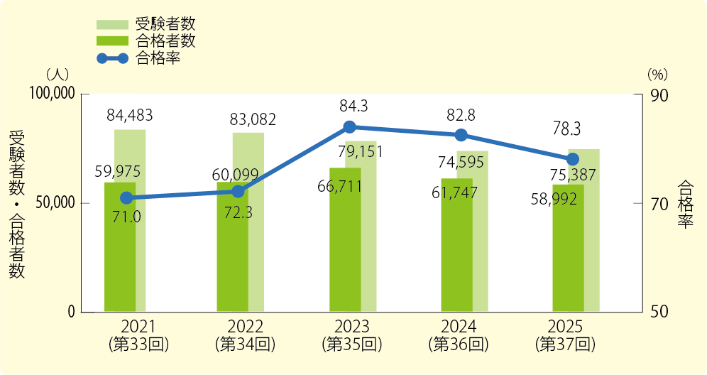 出典:「介護福祉士国家試験の受験者・合格者の推移」|厚生労働省