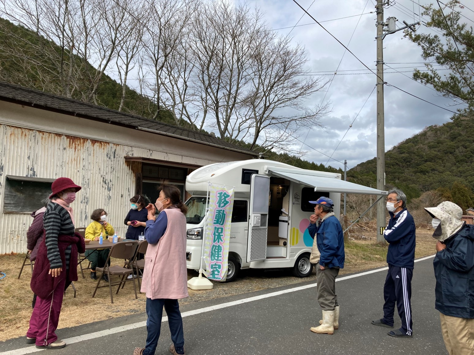 | ▲ コミュ二ティナース活動では、看護師や理学療法士などが車両で、中山間地域の集会所や介護予防体操の会場等に出向き、健康相談などを行う「移動保健室」に取り組んでいる |