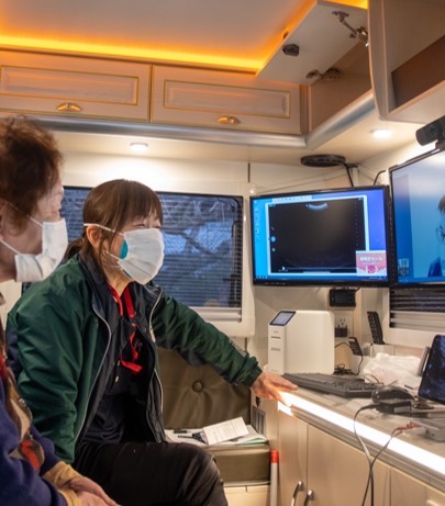 | ▲ 同院は令和4年から「医療MaaS」の運用を開始し、医療機器や通信機器を搭載した車両で、医療アクセスが困難な中山間地域の患者の自宅に出向いてオンライン巡回診療を行っている |