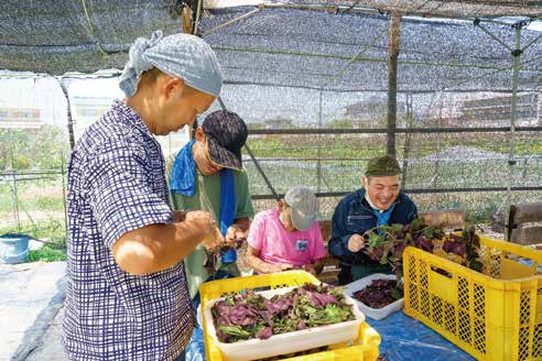 | ▲ 「ほんず活動」を通して利用者は地場産業を支える一翼を担っている | ▲ 農福連携で利用者が栽培した野菜は、法人が運営するカフェなどで使用される |