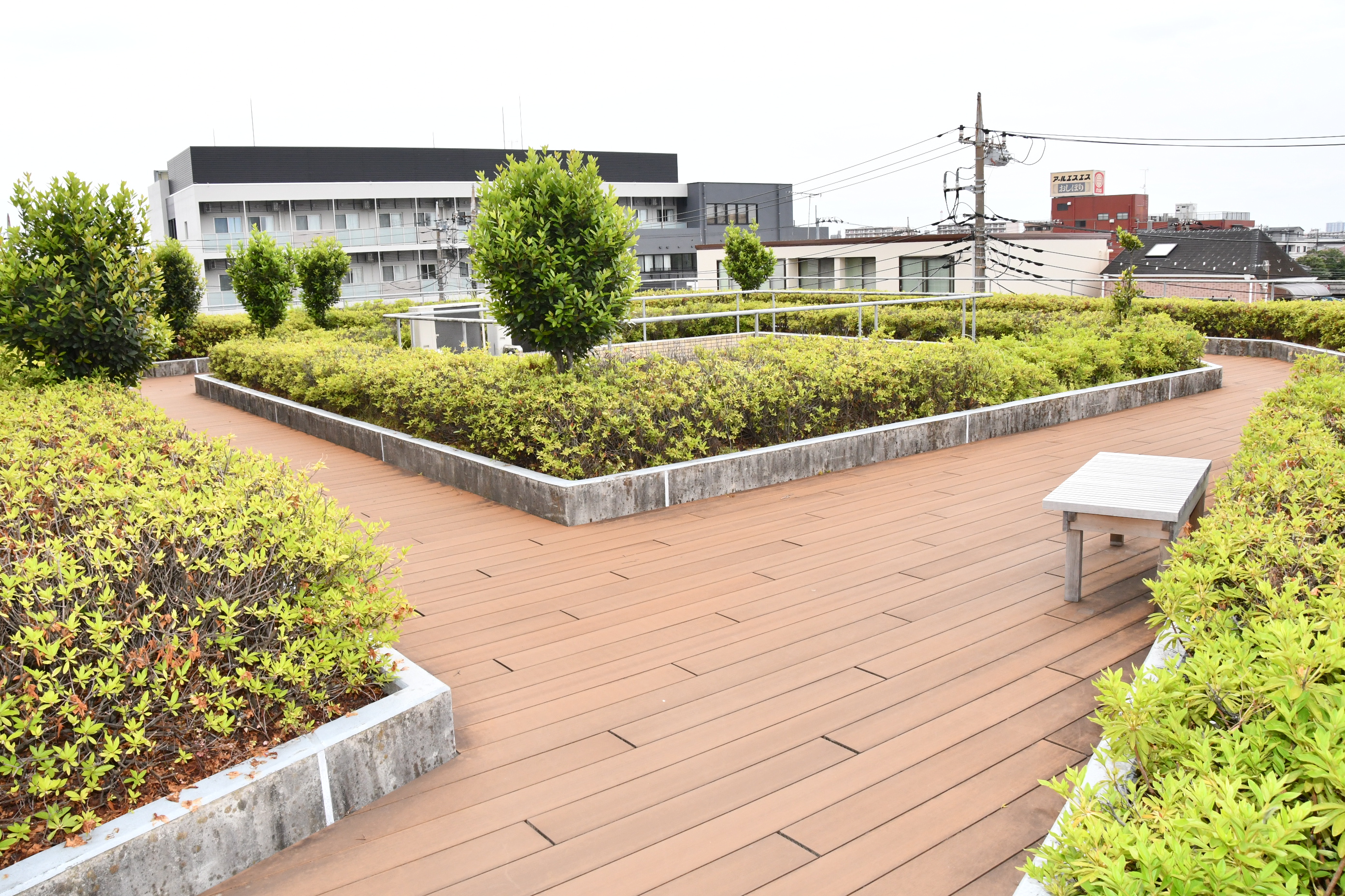 | ▲ 屋上庭園では、見晴らしのよい環境のなかで患者がリハビリに取り組むことができる | ▲ 広々した空間のデイケアのスペース |